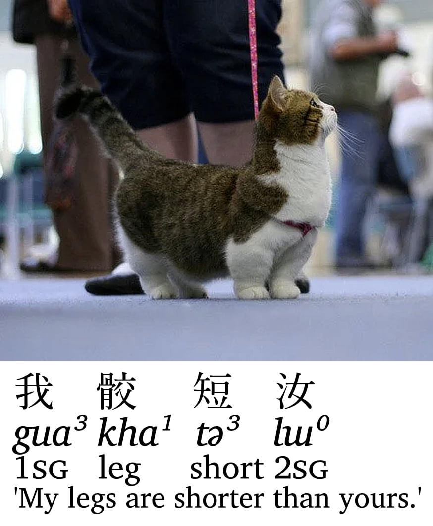 통상적으로 행간주석 interlinear glossing 은 4줄로 구성됩니다. 고양이 사진은 있으면 좋지만 99.99%의 논문에서는 생략합니다. (고양이 사진 출처)