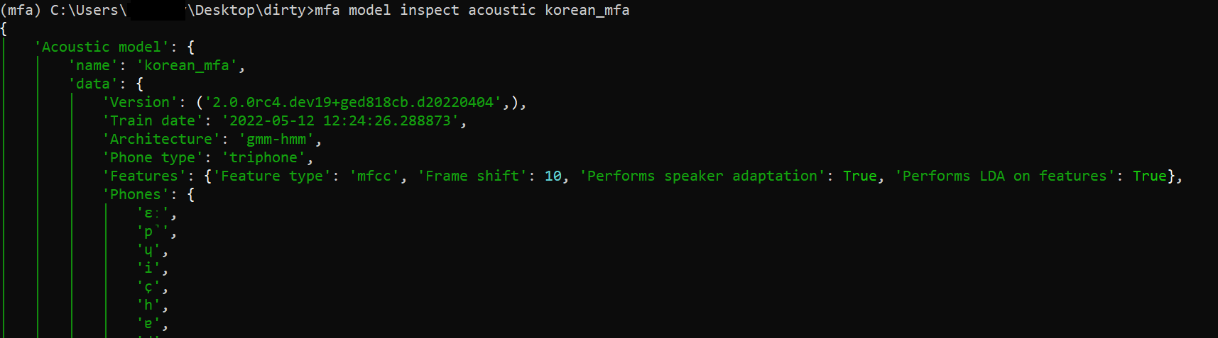mfa model inspect acoustic korean_mfa