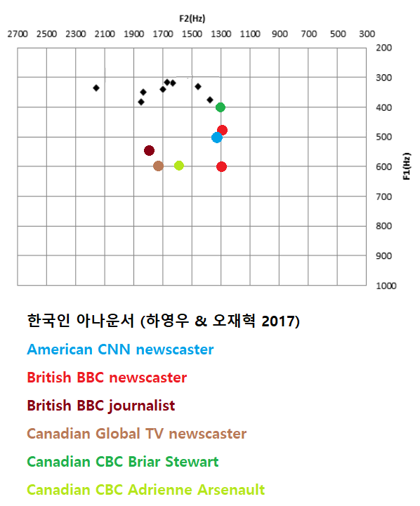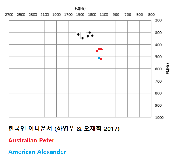한국인 아나운서 발음 데이터는 하영우 & 오재혁(2017)3에서 가져왔다.