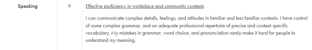 마지막으로 다른 사람들의 스피킹 답안을 듣는 것이 매우 도움이 되었습니다. 아래 링크된 Score comparison chart에 보시면, 각 단계를 받은 답안의 예시와 함께 음성파일도 들어있습니다. 그 사람들의 음성을 들어가면서 솔직히 자신감을 좀 많이 얻긴 했습니다. 11등급 12등급을 받는 건 엄청나지만 7등급 이상 받는 건 어렵지 않겠다는 생각이 들더군요.