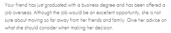 그리고 한 가지 중요한 것은 정확한 답을 하는 것보다 거짓말이더라도 자연스러운 답을 해야 한다는 것입니다. ChatGPT가 되었다.... 라고 스스로 최면을 걸고서 시험에 임하세요.ㅋㅋㅋㅋ 위의 예시 문제를 기왕에 언급한 김에, 이 예시문제에 대하여 '정확하지 않지만 자연스러운' 답이 고득점을 받았다는 것을 보이겠습니다. 이 문제에서는 "고려해야 할 사항이 뭔지 조언하세요"라고 하지만, 고득점(11급, 12급) 답안을 보면, "외국 일자리를 잡아라 이유1 이유2" 하는 식으로 답변한 경우가 많습니다. 고려할 사항을 조언해주는 게 아니라 하나의 결론을 정해놓고 왜 그래야 하는지 이유를 드는 방식의 답변을 한 것이죠. 만약 평가기준이 정확한 답을 하는 것이었으면 요구사항 불이행으로 점수가 많이 깎였을 것입니다. 그러나 이런 답안들은 아주 자연스럽게 말을 했기 때문에, 비록 지시사항 불이행으로 점수가 아주 조금 깎였을지언정 다른 영역에서 점수를 많이 받을 수 있었을 것입니다.
