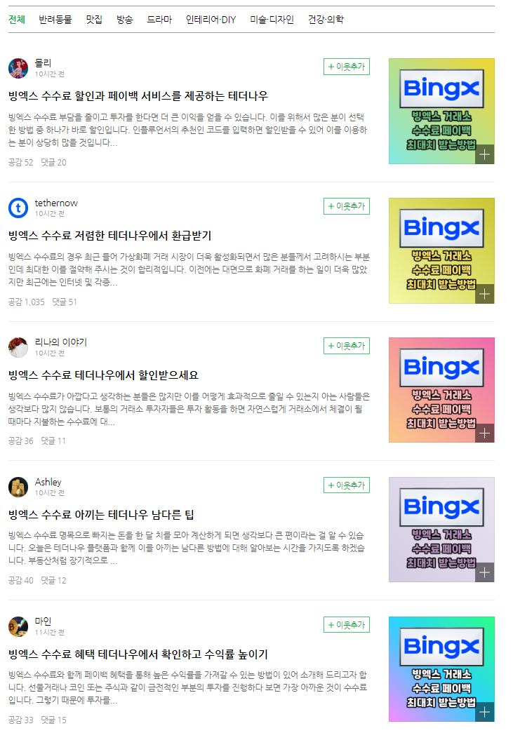 네이버 블로그가 어느 정도로 망했냐는, 네이버 블로그 메인 페이지에 뜨는 "주제별 블로거 추천"이 아래와 같은 꼬라지가 된 걸 보아도 알 수 있습니다.
