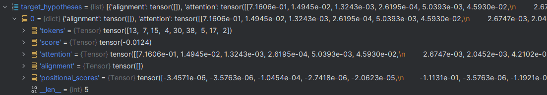 맥락을 보니 이 분기는 모든 과정이 다 끝난 후 target_hypotheses object의 각 element를 iterate하면서 score를 뿌려주는 모양이었다. target_hypotheses 는 list object인데, 각 후보형에 대한 주요정보들을 다 가지고 있었다.