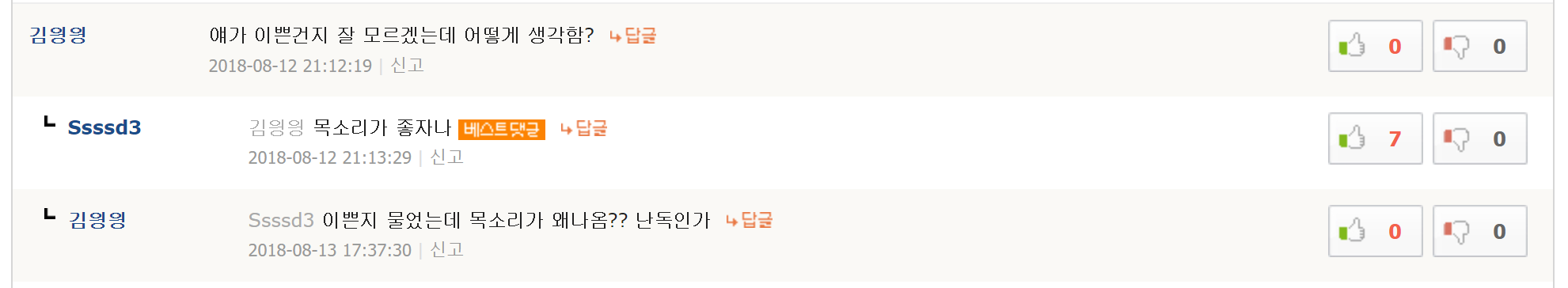 A: 이쁜지 물었는데 목소리가 왜 나옴?? 난독인가?