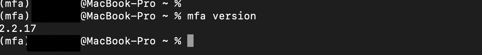 일단 버전을 확인하기 위해 terminal에서 mfa version 를 하면 2.2.17 임을 알 수 있습니다.