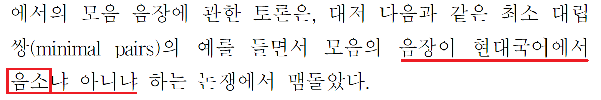 또한 김진우 교수님도 '의미를 구별하는 말의 최소단위'를 '음소'라고 호칭하십니다. 아래의 스크린캡처는 2008년에 게재된 김진우 교수님의 논문에서 가져온 것인데, 국어학의 용어체계에 따르면 '.... 음장이 현대국어에서 운소냐 아니냐' 혹은 '... 음장이 현대국어에서 음운이냐 아니냐'로 불러야할 것입니다.