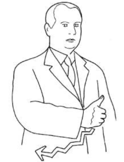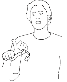 아래 수어는 프랑스 수어(LSF – Langues de Signes Français) 19세기 형태에서 발견되는 CHAQUE다. 엄지손가락을 든 primary hand를 좌우로 움직이며 몸 바깥쪽으로 엄지손가락을 까딱까딱하는 형태다.