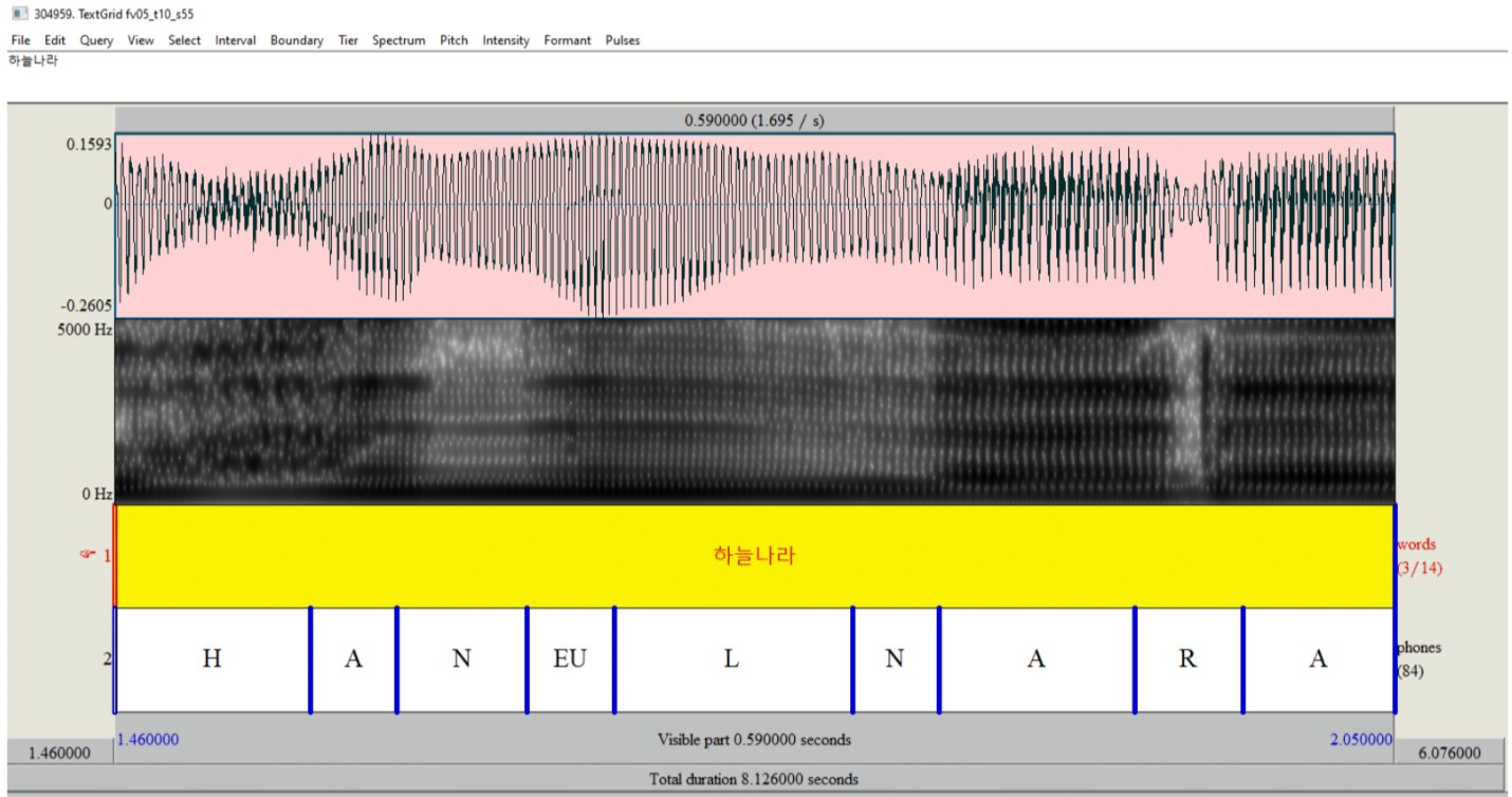 기계적으로 작업을 했기 때문에 소리를 들으면서 하지는 않았지만, 모음이 끝나는 지점이 애매할 때는 소리를 들으면서 태깅했다.