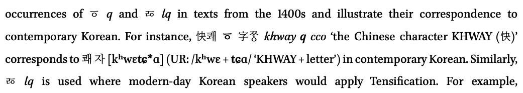 참고로 내 박사논문에도 (당연하게도) 한글 옛한글 심지어 한자가 출현하는데, 스타일 구성을 내맘대로 할 수 있으니 아래와 같이 나름 조화롭게 다 나온다.