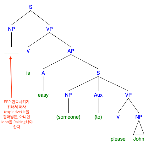 - DS: [S1 ______ is easy [S2 (someone) to please John ]]