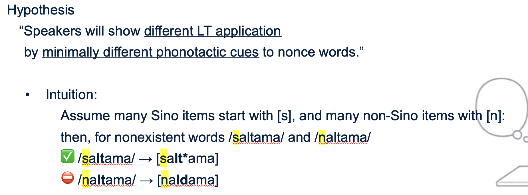 아이디어는 "만약 기존 단어에서 어떤 층위 편향적 특징이 있다면, 그걸 비단어에 접목해서 실험할 수 있음"