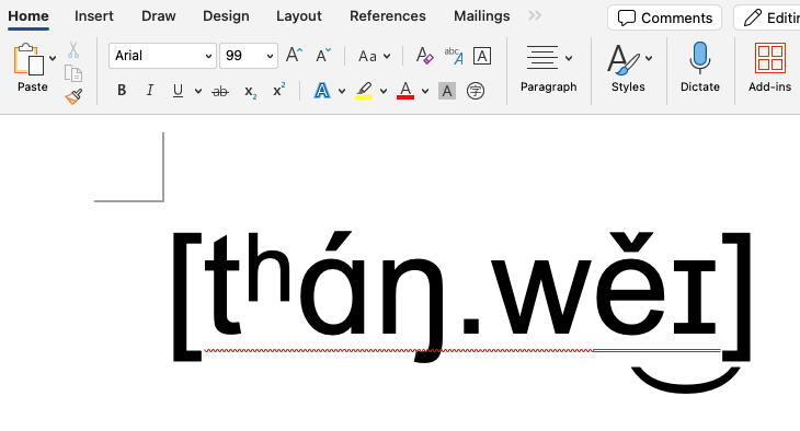 근데 애초에 U+026A [ɪ] 기호가 macOS 환경에서 제대로 렌더링되지 않은 이유는 알게 되었다. 맥에서 Arial 폰트를 쓰면 안 되는 거였다. Helvetica (맥은 Helvetica가 기본 내장이다)를 쓰면 잘 렌더링된다.
