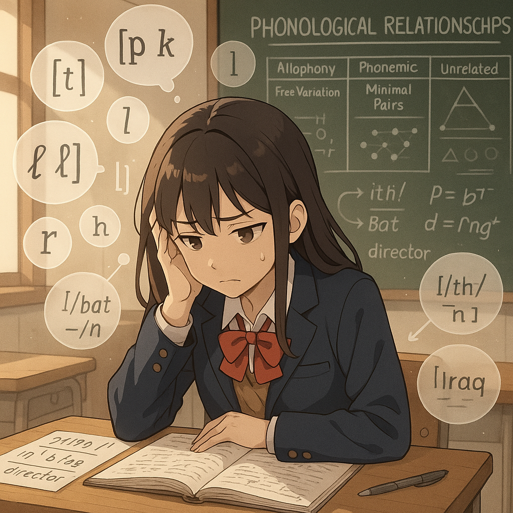 이런 것이 바로 음운론적 관계다. 똑같은 얘기 누차 정리한다. 말소리는 각 언어 내에서 분포를 이루는데, 분포가 편향적이다. 각각의 말소리 그 자체를 봤을 때는 (음성학적 분석) 그 편향적 분포를 설명할 수 없지만, 음운론적으로 어떤 말소리가 어디에 나오는지를 '일반화'할 수 있다. 그 일반화를 바탕으로 말소리 쌍 사이의 관계를 '정리'할 수 있다. 이러한 정리는 음운론적이기 때문에 음운론적 관계라고 부른다.