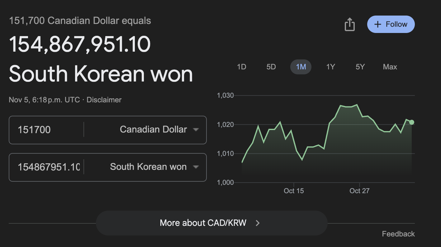 2023/2024년 캐나다 주요 15개 대학 전임 교원의 중위연봉은 $151,700 (한국돈 1억 5천만원)