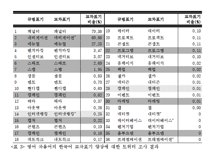 그리고 옛날 코퍼스 찾았다! 2015년 자료다. 트위터에서 외래어가 어떻게 사용되었나를 조사한 것이다.
