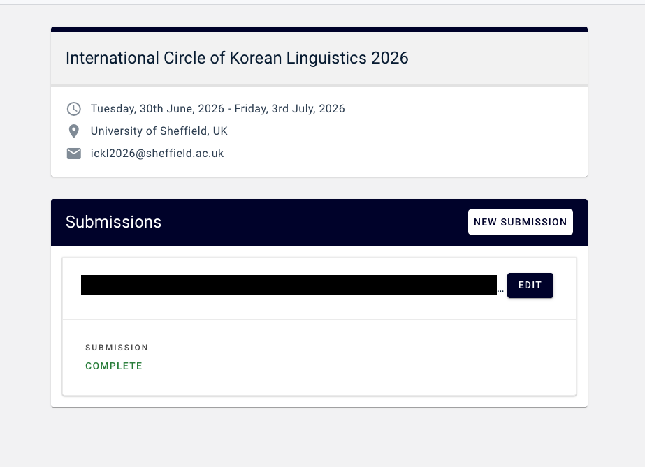 공교롭게 오늘 비슷한 느낌의 학회 두 곳에서 Call for paper가 왔다. 24th Meeting of the International Circle of Korean Linguistics [링크]abstract due: 2025-11-30 (제출완료, 2월에 통과여부 결정)장소: University of Sheffiel