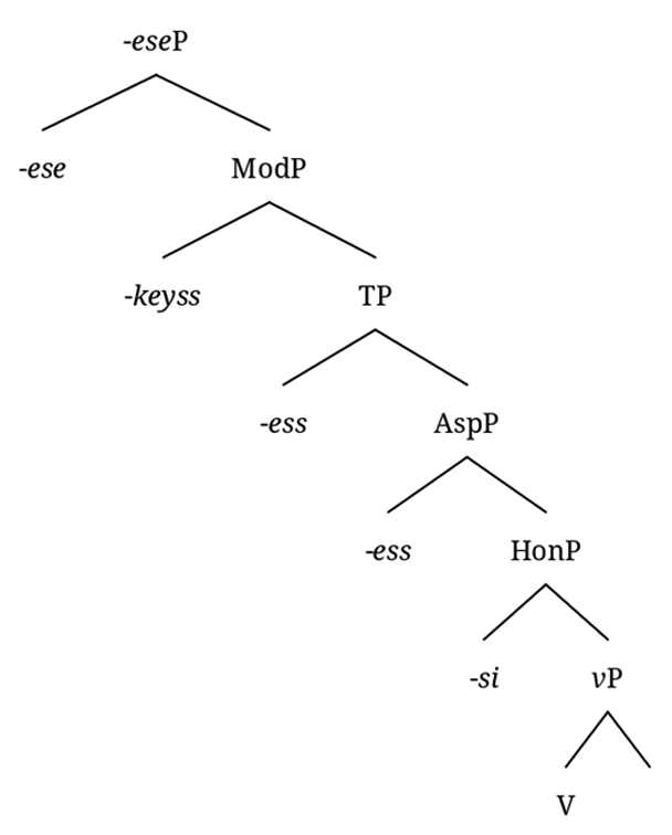 그래서 MacDonald (2024)에서는 아예 '-어서' 절을 ModP까지 내포하는 것으로 보기도 했다. (아래 수형도)