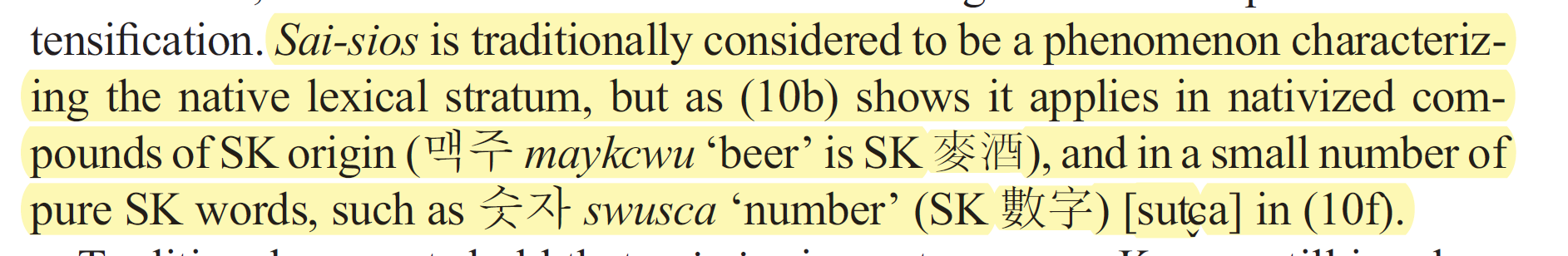Whitman & Cho 교과서 (Whitman & Cho, 2019) 보면 이런 대목이 나온다.(Cho, S., & Whitman, J. (2019). Korean: A Linguistic Introduction. Cambridge University Press.)