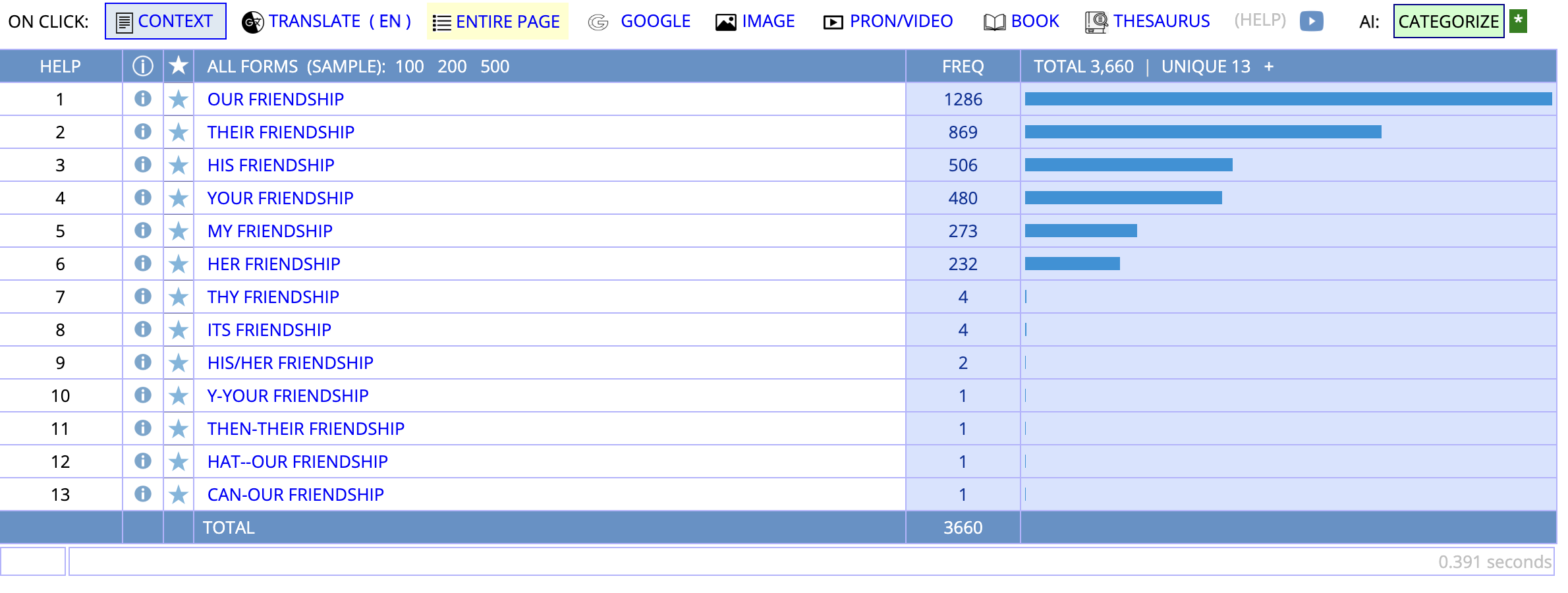 | 2 | friendship between | 501 |